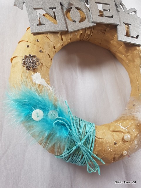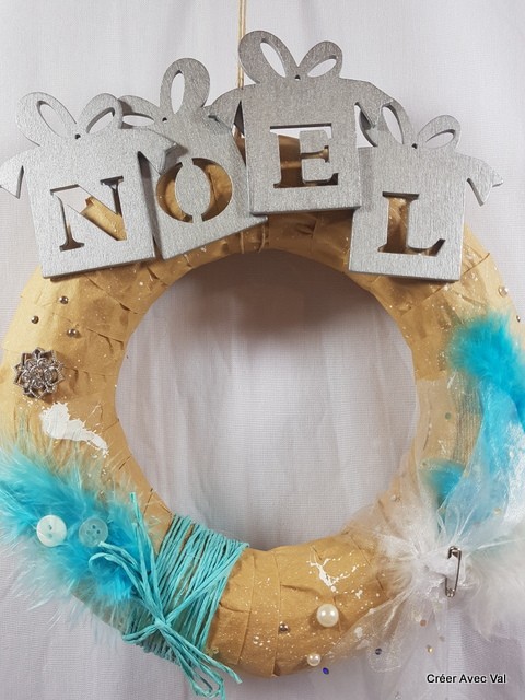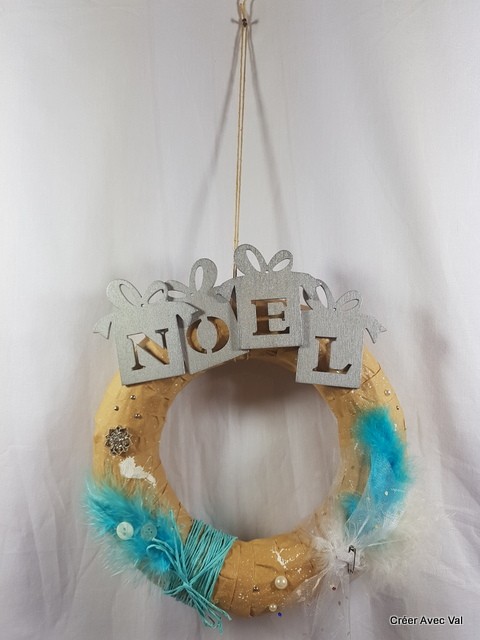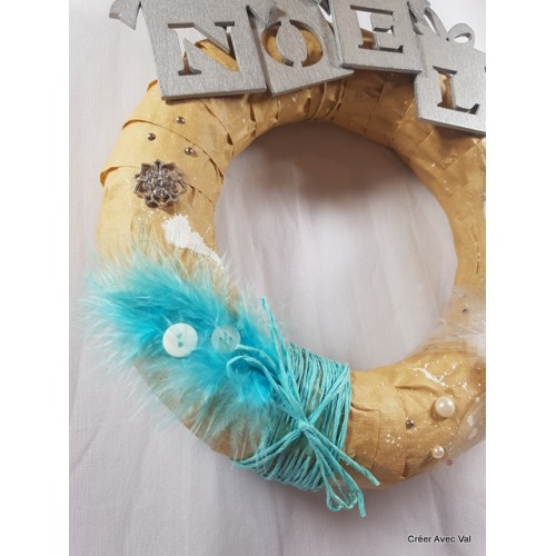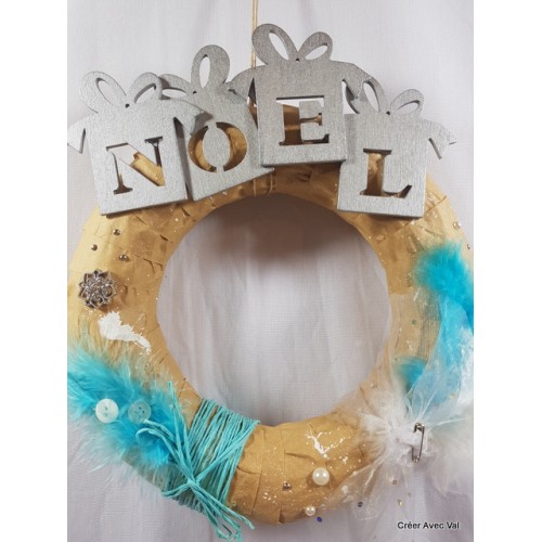 Le mot "Noël" en bois léger et coller sur le haut de la couronne.