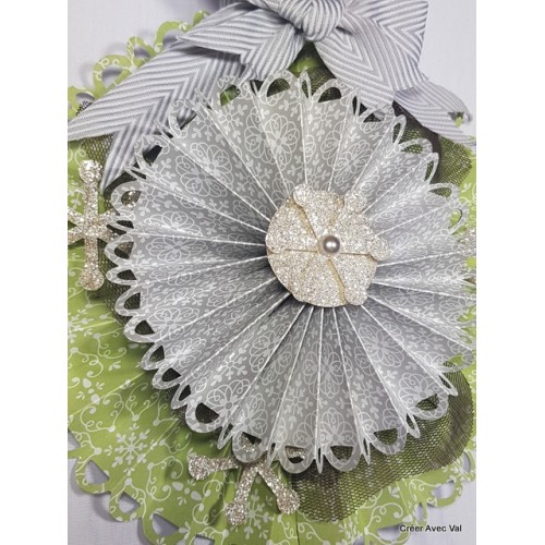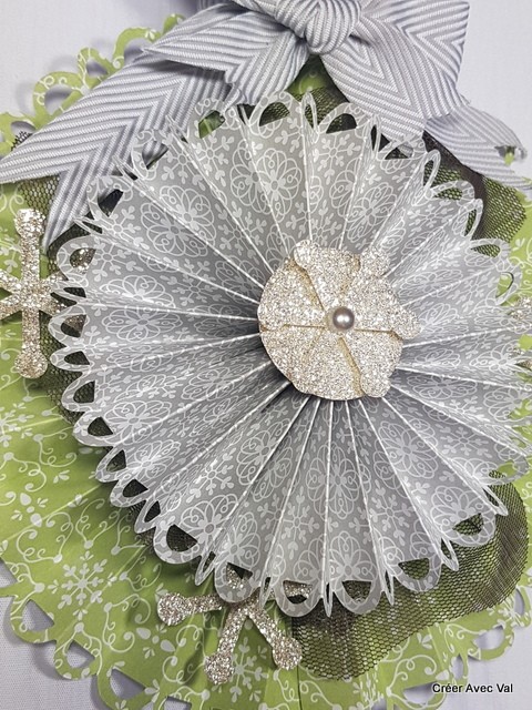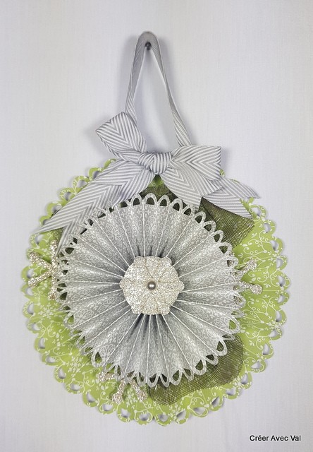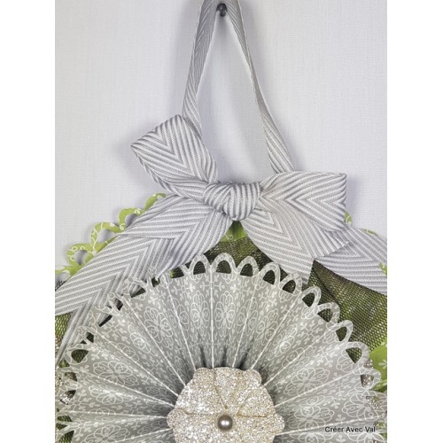 Cette décoration est composée de deux rosaces de tailles différentes, elle égayera à merveille votre intérieur pour la période des fêtes de fin d'année. Pour la décoration j'y suis ajoutée du tulle, d'étoile pailleté et de ruban.