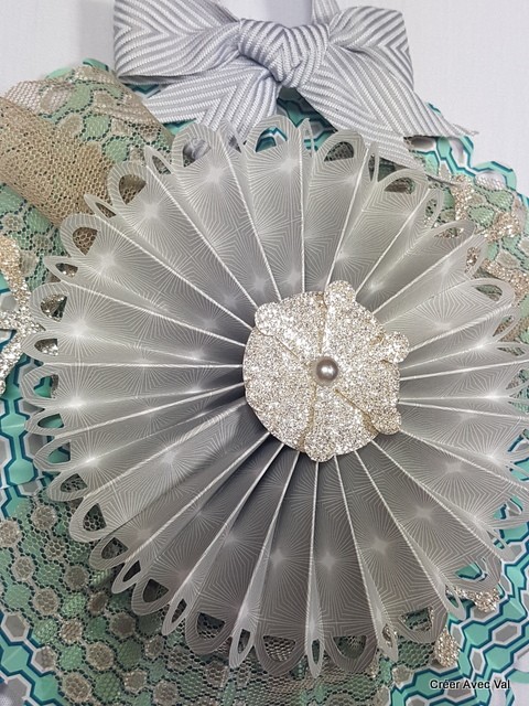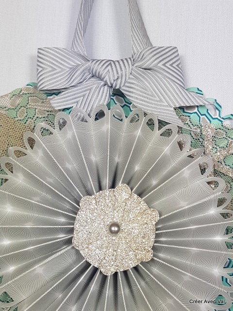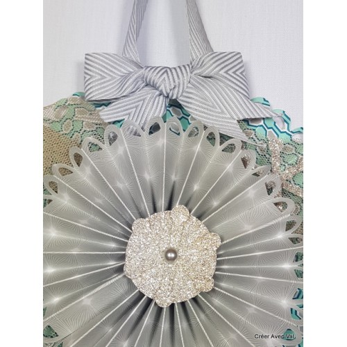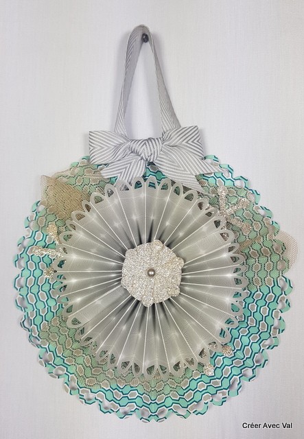 Cette décoration est composée de deux rosaces de tailles différentes, elle égayera à merveille votre intérieur pour la période des fêtes de fin d'année. Pour la décoration j'y suis ajoutée du tulle, d'étoile pailleté et de ruban.