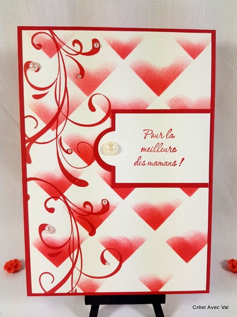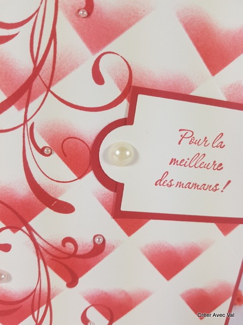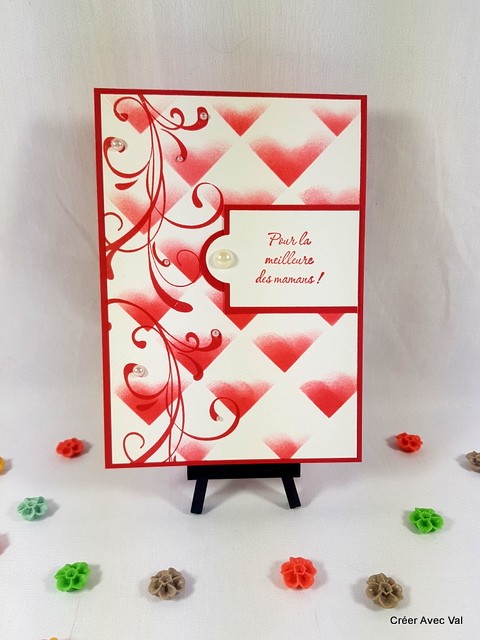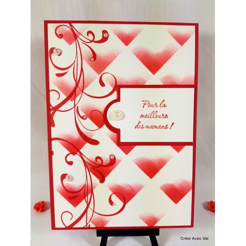 Une jolie carte toute en finesse et sobriété pour la fête des mères. Un encrage spécial pour égayer cette carte. Des perles de différentes tailles finissent la décoration.