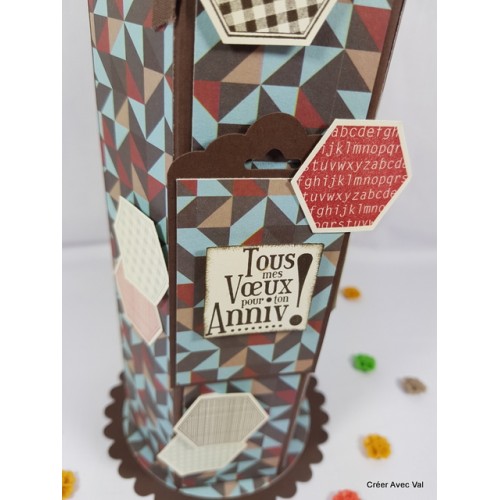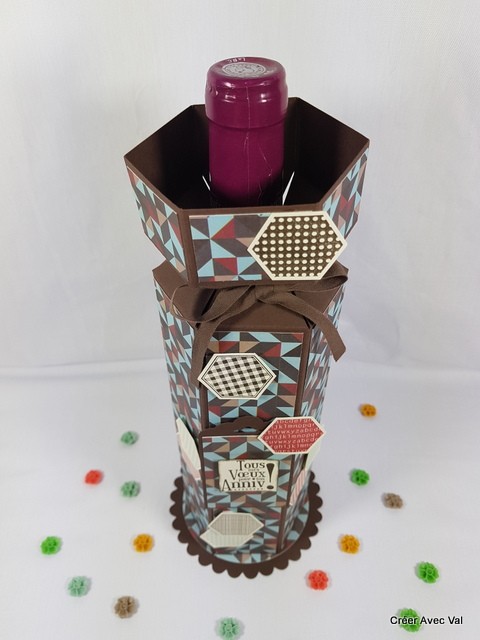 Coffret pour bouteille de vin " anniversaire" déco hexagones (n°11)