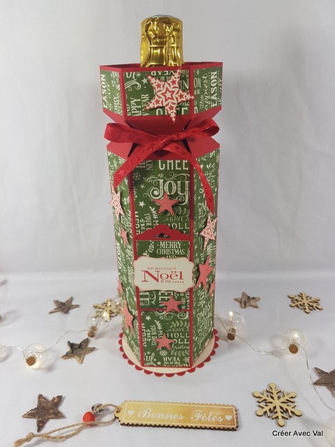 Coffret pour bouteille de Champagne "Noël" déco étoiles (n°04)