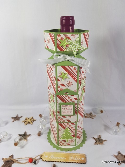 Coffret pour bouteille de vin "Noël" déco étoiles et sapin (n°16)