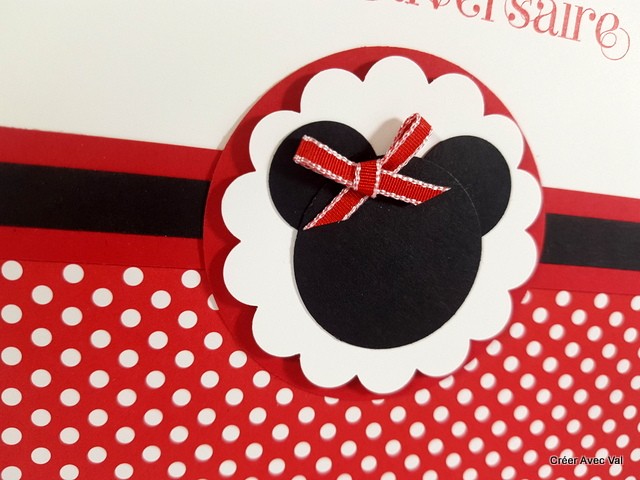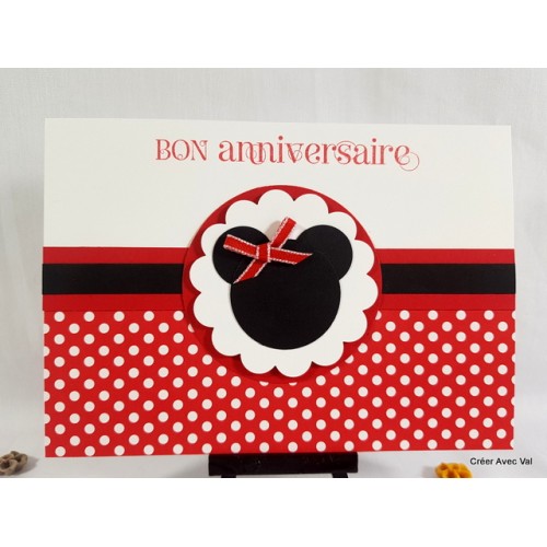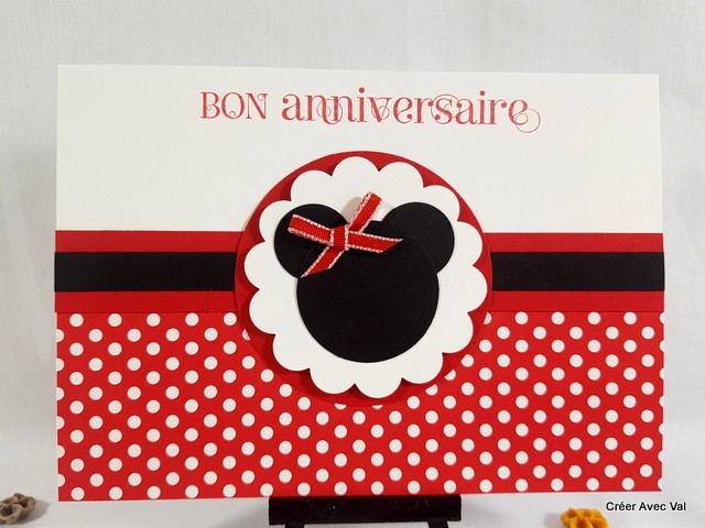 Une base de carte blanche qui accueille un papier imprimé sur le bas de la carte, sur le centre plusieurs superpositions de papiers pour finir avec la silhouette mondialement connue, un flou rouge et le vœu d'anniversaire termine la carte.