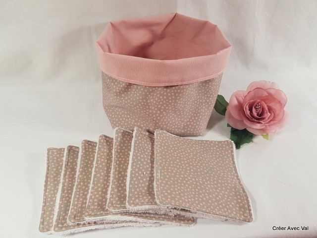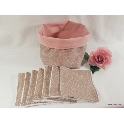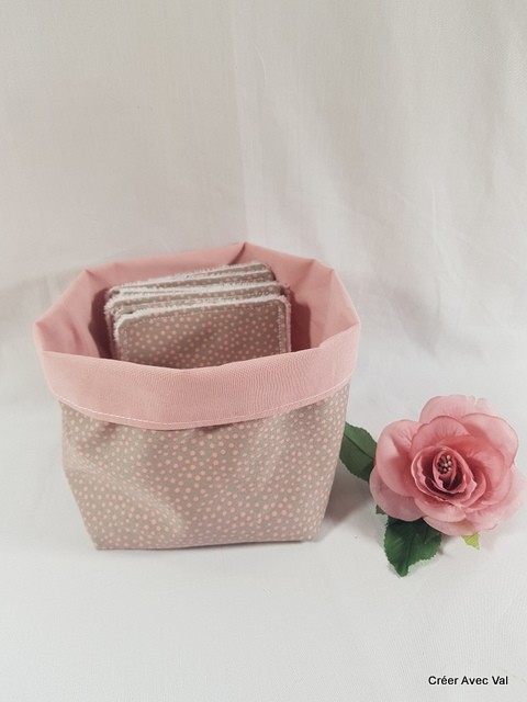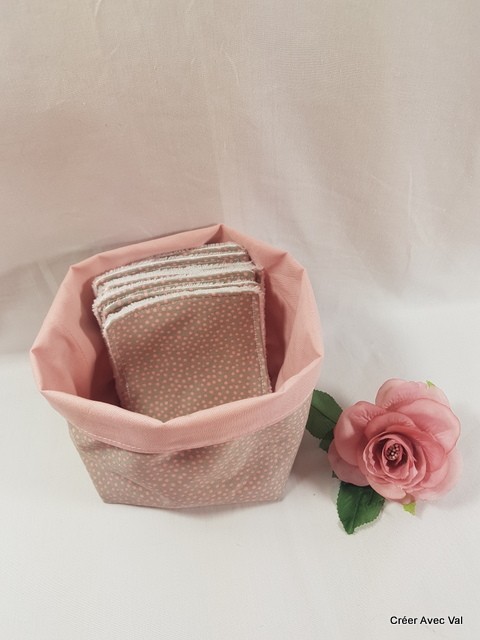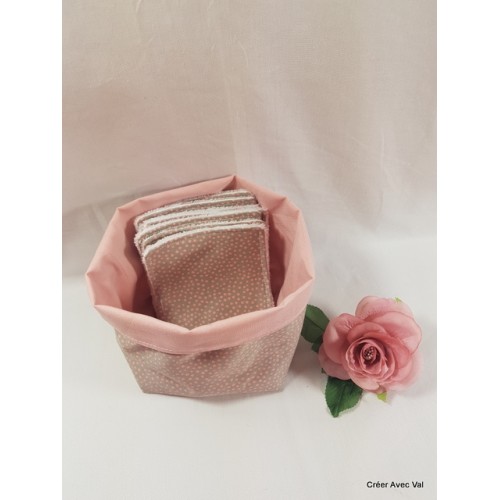 Panier et cotons démaquillants, rose à pois