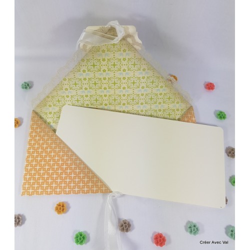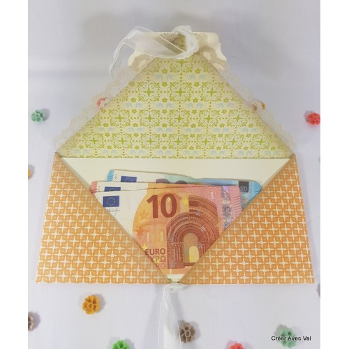 Cette enveloppe est idéale pour offrir de l'argent, une place de concert ou un chèque-cadeau pour un anniversaire où tout autre occasion. Fourni avec une carte simple pour y écrire un petit mot. Fermeture avec un ruban.