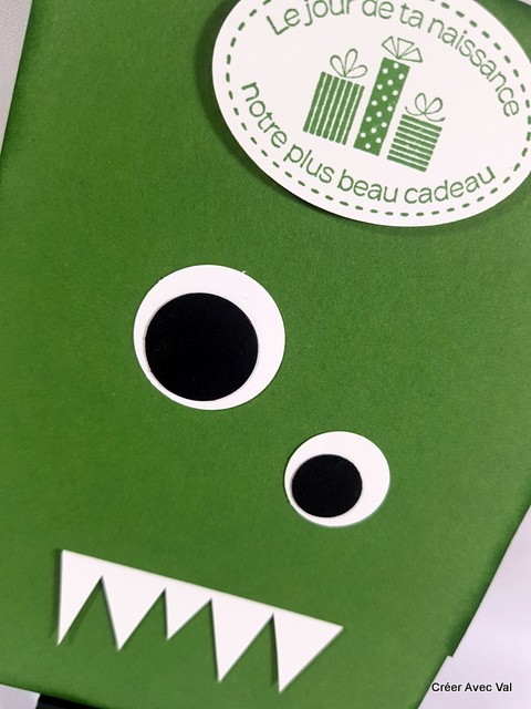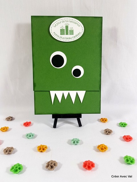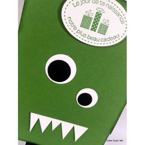 Cette carte représente un monstre, dans les tons vert et blancs, elle sera idéale pour un enfant fan de monstres gentils.